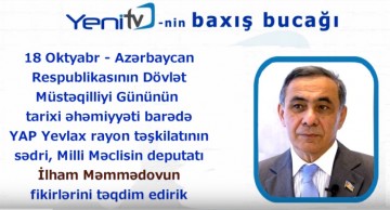 Xəbərlər 18 oktyabr - Azərbaycan Respublikasının Dövlət Müstəqilliyi gününün tarixi əhəmiyyəti barədə Milli Məclisin deputatı İlham Məmmədovun fikirlərini təqdim edirik 18 Oktyabr 2019 17:39