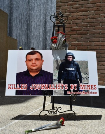 Azərbaycanlı icmasının nümayəndələri, həmçinin şəhərdə etiraz yürüşü keçiriblər. Sonra mərkəzi parklardan birində şəhid jurnalistlərin xatirəsinə yaradılan guşəyə qərənfillər düzülüb.