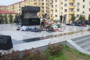 Əllərində üçrəngli bayrağımızı və Xocalının haqq səsini müxtəlif dillərdə bəyan edən şüarlar tutmuş gənclər qəsəbənin yaxınlığındakı Bayraq meydanından yürüşə çıxaraq, soyqırımı qurbanlarının xatirəsinə ucaldılmış abidə önünə gəliblər. Burada keçirilən mərasimdə Xocalı Rayon İcra Hakimiyyəti başçısının birinci müavini Vahid Əliyev çıxış edərək, 23 il əvvəl ermənilərin Xocalıda törətdikləri dəhşətli faciədən danışıb.