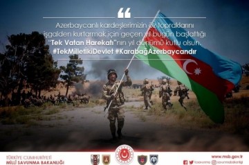 Türkiyənin Milli Müdafiə Nazirliyi tərəfindən Azərbaycanın Vətən müharibəsinin başlamasının birinci ildönümü münasibətilə mesaj yayımlanıb.