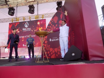 Birinci Avropa Oyunlarının çırağı yandırılaraq yarışlar başa çatana qədər saxlanılmaq üçün rayona təhvil verildi.