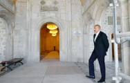 Prezident İlham Əliyev və birinci xanım Mehriban Əliyeva Şuşada Yuxarı Gövhərağa məscidini ziyarət edib, burada aparılan yenidənqurma və bərpa işləri ilə tanış olublar
