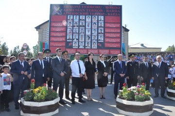 Tədbirdən öncə Vətən müharibəsi dövründə Ermənistan ordusu tərəfindən Bərdə rayonuna atılan bombalar nəticəsində həlak olmuş mülki şəhidlərin xatirə lövhəsinin önünə tər güllər düzüldü, xatirəsi yad olundu, ruhlarına dualar oxundu.