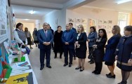 Tədbir iştirakçıları öncə Laçın rayon 12 nömrəli tam orta məktəbin foyesində Zəfər Gününə həsr edilmiş məktəblilərin rəsm və əl işlərindən ibarət sərgiyə baxıblar.