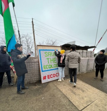 Laçın-Xankəndi yolunda aksiya keçirilən ərazidə ekologiyanı qorumağa çağıran 884 kubik-rubikdən ibarət mozaik portret qurulub. Portretin üzərində “Save ecology” yazısı qeyd olunub.