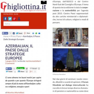 İtaliyanın “Ghigliottina” və “Globalist” xəbər saytlarında Azərbaycanın Avropa üçün önəmindən, ölkəmizin ənənələrindən və müasirliyindən bəhs edən məqalə yerləşdirilib.