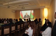 Tədbirdə Ulu Öndər Heydər Əliyevin və Azərbaycanın ərazi bütövlüyü uğrunda canlarını qurban vermiş şəhidlərimizin əziz xatirəsi bir dəqiqəlik sükutla yad edilib. Sonra Azərbaycan Respublikasının Dövlət Himni səsləndirilib.