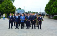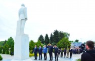 Əvvəlcə Ümummilli Lider Heydər Əliyevin abidəsi ziyarət olunub, abidə önünə gül dəstələri düzülüb.