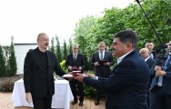 Dövlətimizin başçısı və birinci xanım evlərin açarlarını sakinlərə təqdim etdilər.