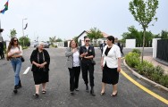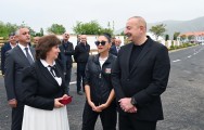 Daha sonra Prezident İlham Əliyev, birinci xanım Mehriban Əliyeva və qızları Arzu Əliyeva sakinlərlə birlikdə Xocalı şəhərini gəzdilər, görülən işlərlə tanış oldular.