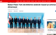 Nəşr Türkiyənin xarici işlər naziri Hakan Fidanın çıxışından bəhs edərək, onun Yaxın Şərqdə qırğını dayandırmağın zəruriliyi ilə bağlı sözlərini sitat gətirir: “Türk dünyası bölgədəki humanitar dramdan üz çevirməməlidir”.