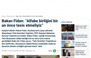 Türkiyənin NTV telekanalı hazırladığı reportajda Türkiyənin xarici işlər naziri Hakan Fidanın tezliklə türk dünyasının vahid əlifbasını yaratmaq çağırışına diqqət çəkib.