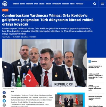 DHA və Anadolu xəbər agentlikləri Türkiyənin vitse-prezidenti Cevdet Yılmazın Şuşadakı çıxışı barədə ətraflı məlumat veriblər.