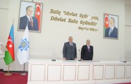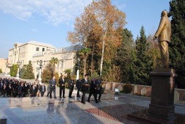 Tədbir iştirakçıları əvvəlcə Mərkəzi Meydanda Ulu Öndər Heydər Əliyevin abidəsini ziyarət edərək, önünə gül dəstələri qoyub, Dahi Liderin xatirəsini dərin hörmətlə anıblar.