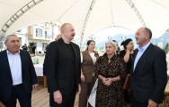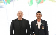 Qadın sakin: Bu gün Sizinlə, ailə üzvlərinizlə, dövlətimizlə fəxr edirəm. Ona görə ki, atamın şəhid olduğu bu torpağa mən bu gün Sizin sayənizdə ayaq basa bilmişəm, gələ bilmişəm. Sizə minnətdarlığımı bildirirəm. Bütün xalqımız Sizinlə qürur duyur. Hər zaman var olasınız.