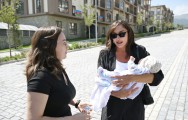 Mehriban xanım Əliyeva: Gəlsin, əlbəttə. Balacanı da gətirib. Üçaylıq körpəsi ilə gəlib.