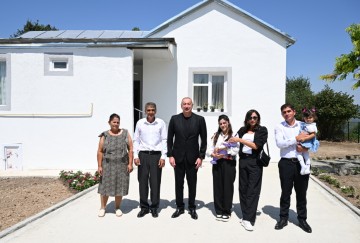 Daha sonra dövlətimizin başçısı və birinci xanım kənd sakini Rəfayət Musayevin evinə gəldilər.