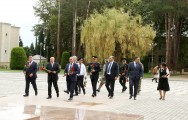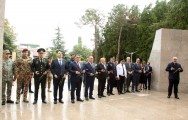 Tədbir iştirakçıları əvvəlcə Ümummilli Lider Heydər Əliyevin abidəsini ziyarət edib, önünə gül dəstələri düzüblər.