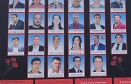Sonda Bərdə terror qurbanlarının xatirəsinə salınmış kompleksin önündə xatirə şəkli çəkdirilib.