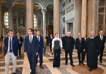 Azərbaycanın Birinci vitse-prezidenti Vatikanda Müqəddəs Pavel Bazilikasında həyata keçirilən bərpa işləri ilə tanış olub