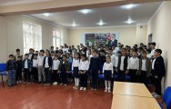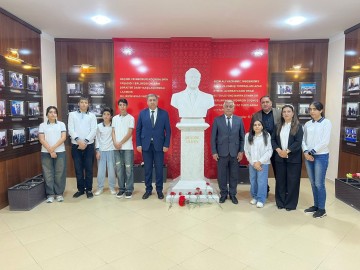 Əvvəlcə məktəbin foyesində Ulu Öndər Heydər Əliyevin büstü ziyarət edilib, önünə gül dəstələri düzülüb.